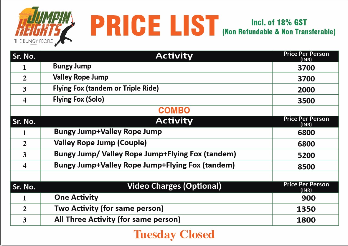 - Scenic Jump Site: Jump from a professional platform nestled amidst the hills and river valleys of Rishikesh.